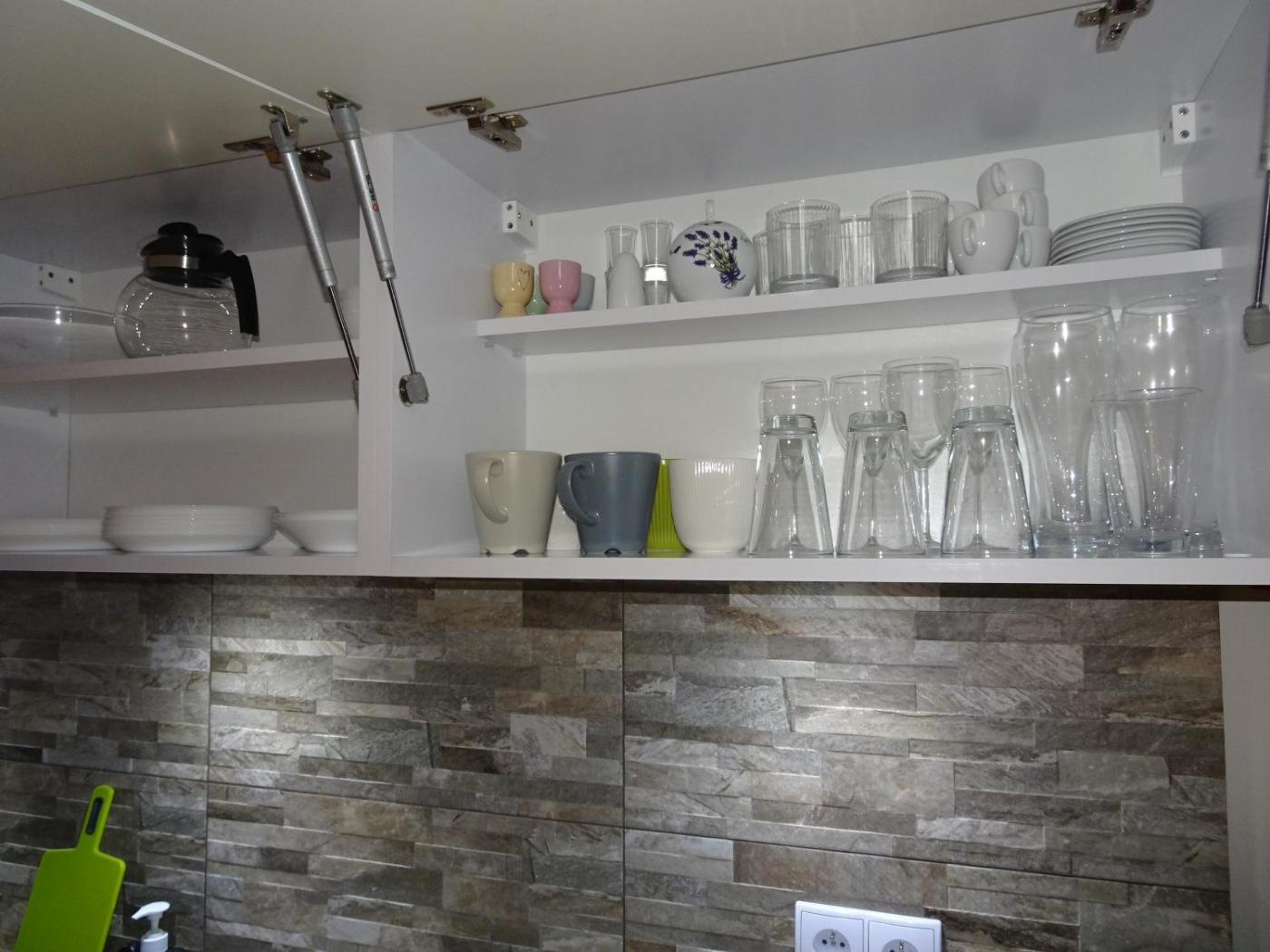 W apartamencie zapewniono sypialnię (1), łazienkę (1), pościel, ręczniki, jadalnię oraz aneks kuchenny z pełnym wyposażeniem. Do dyspozycji Gości jest także telewizor z płaskim ekranem oraz balkon z widokiem na ogród.
