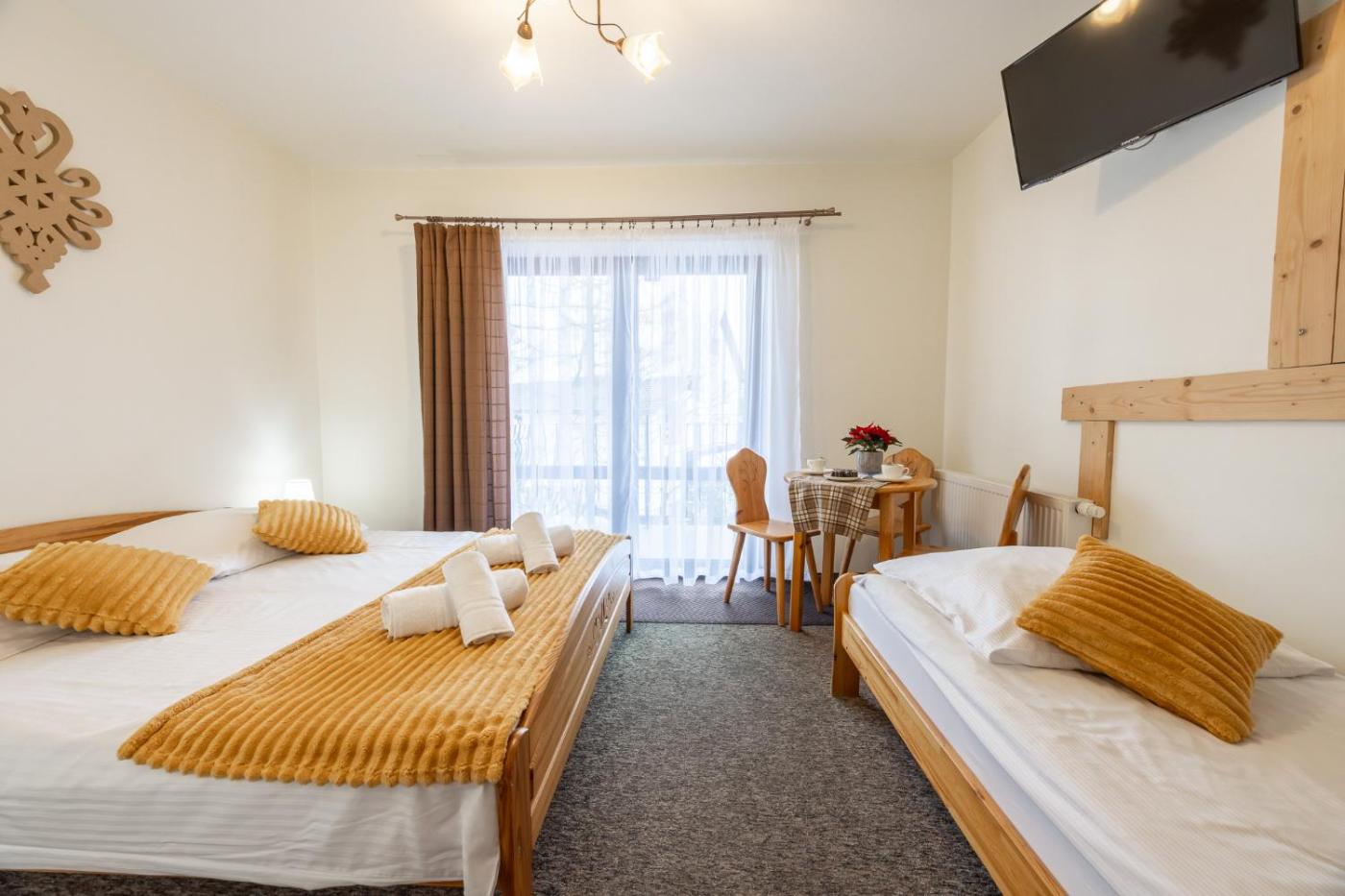 Pokój Czteroosobowy. The quadruple room features a wardrobe, a carpeted floor, a balcony with mountain views as well as a private bathroom boasting a shower. The unit has 3 beds. Pokój Czteroosobowy - 4 osobowy. Powierzchnia pokoju ok.: 39 mkw. ;