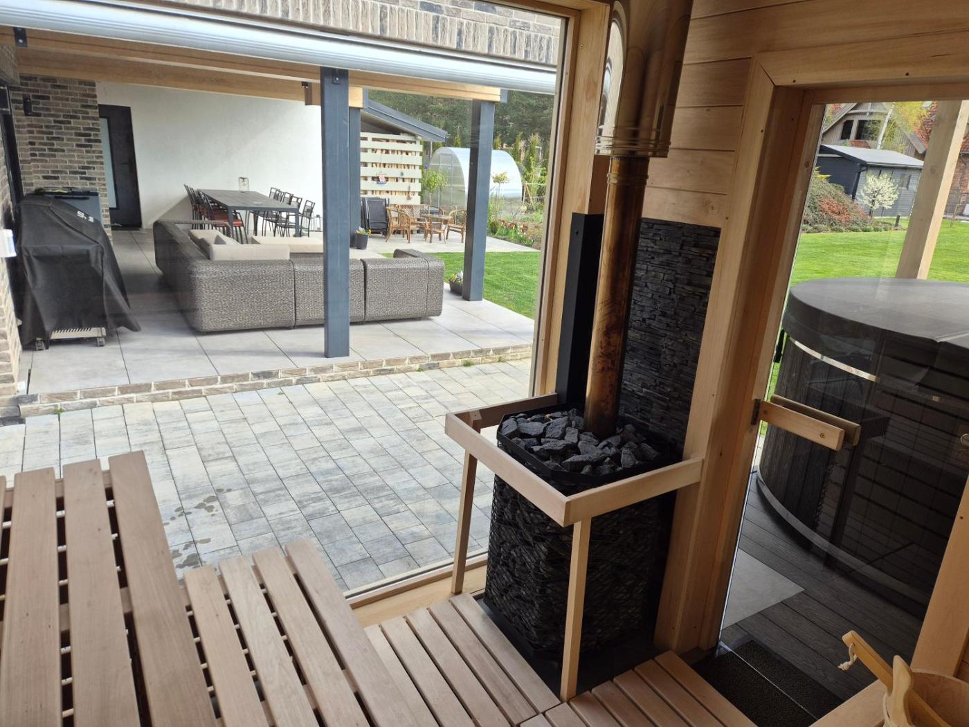 Zaplecze odnowy biologicznej obiektu Willa nad Jagodnym obejmuje saunę i wannę z hydromasażem.