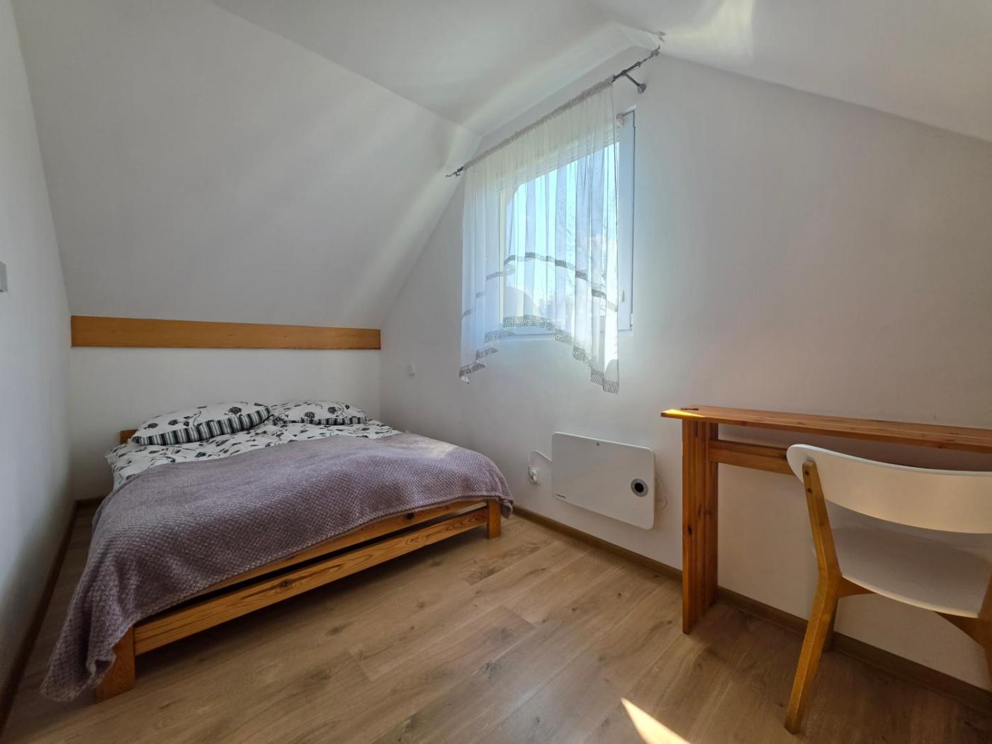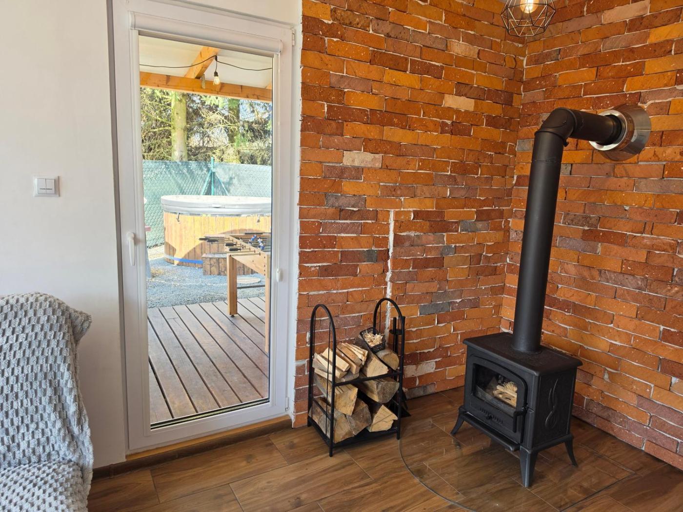 Dom z 2 sypialniami. This holiday homes standout features are the hot tub and fireplace. This holiday home consists of 1 living room, 2 separate bedrooms and 1 bathroom with a shower and free toiletries. Guests will find a stovetop, a refrigerator, kitchenware and an electric kettle in the fully equipped kitchenette. The holiday home also offers a barbecue. Featuring a terrace with garden views, this holiday home also provides a private entrance and a flat-screen TV with satellite channels. The unit offers 4 beds. Dom wakacyjny - 6 osobowy. Powierzchnia pokoju ok.: 48 mkw.
