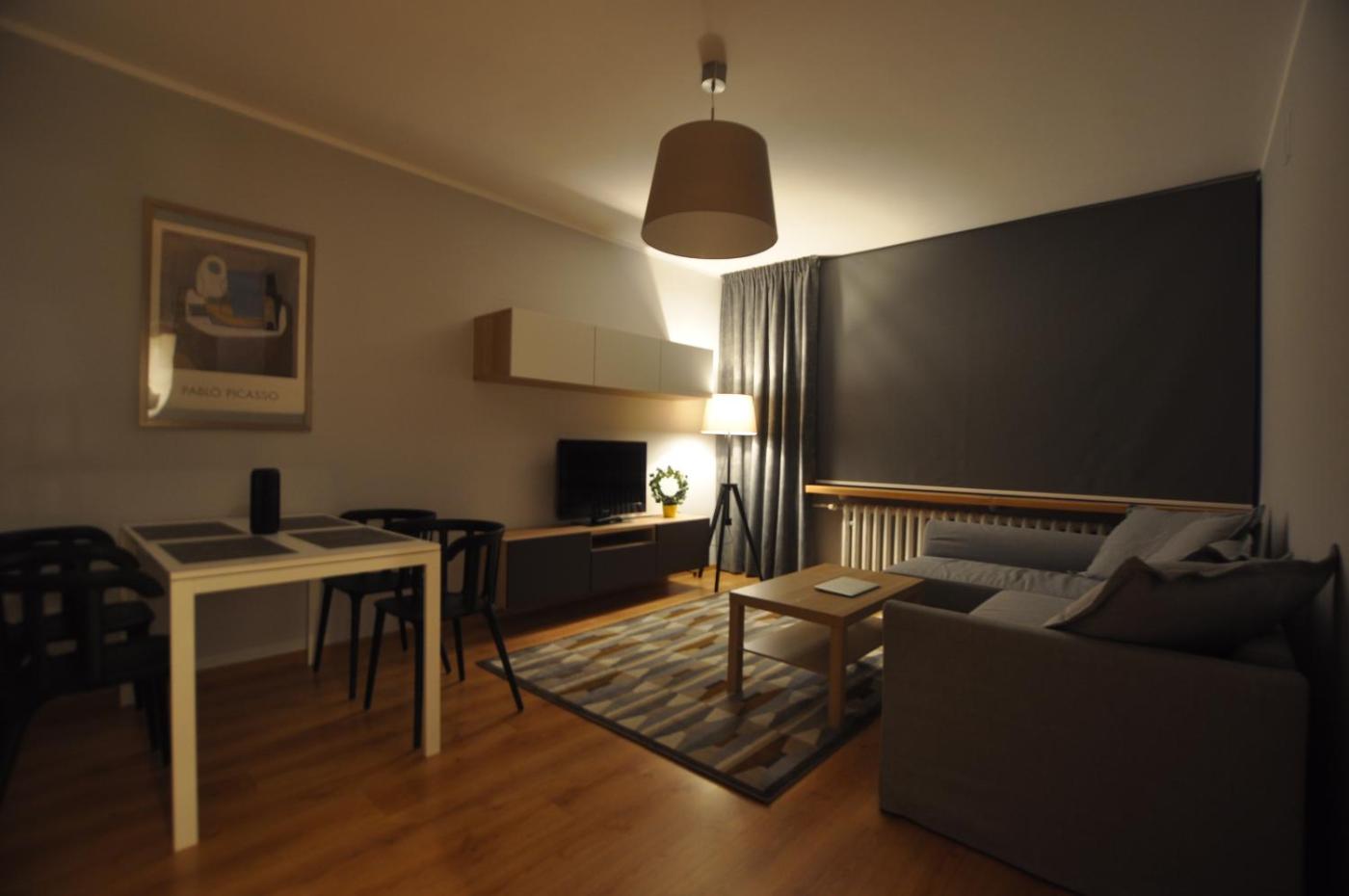 Apartament z 1 sypialnią. This apartment comes with 1 living room, 1 separate bedroom and 1 bathroom with a shower and a hairdryer. Guests can make meals in the kitchenette that features a stovetop, a refrigerator, kitchenware and a microwave. The apartment features a flat-screen TV with cable channels, a washing machine, a tea and coffee maker, a seating area as well as city views. The unit has 2 beds. Apartament - 4 osobowy. Powierzchnia pokoju ok.: 35 mkw.